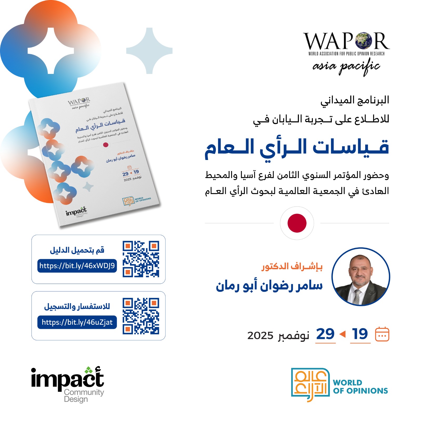 وفي هذا السياق، تأتي الزيارة الميدانية إلى مراكز استطلاعات الرأي في اليابان لتوفر تجربة غنية في التعرف على أحد أهم القطاعات المؤثرة في رسم السياسات العامة وفهم توجهات المجتمع. فالاطلاع على النماذج اليابانية الرائدة في هذا المجال يفتح آفاقًا لتبادل الخبرات، ويعزز من قدرات المشاركين على تطوير العمل البحثي والإحصائي في بيئاتهم المحلية، بما يسهم في رفع جودة البيانات وتحقيق الفائدة لصنّاع القرار. لذا؛ يأتي هذا البرنامج الميداني لمركز عالم الآراء للاطلاع على تجربة اليابان في دراسات وقياسات الرأي العام خلال خريف 2025.